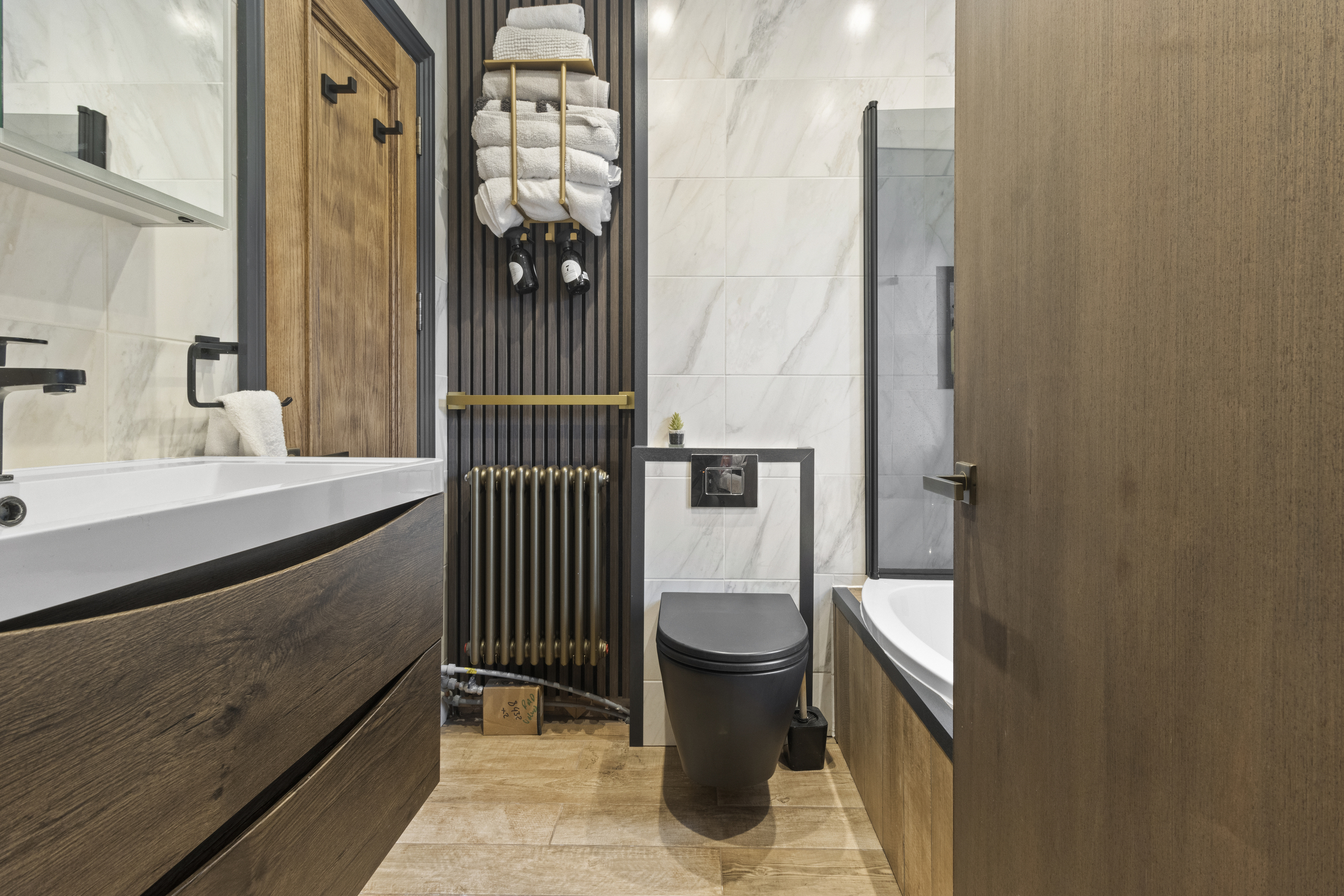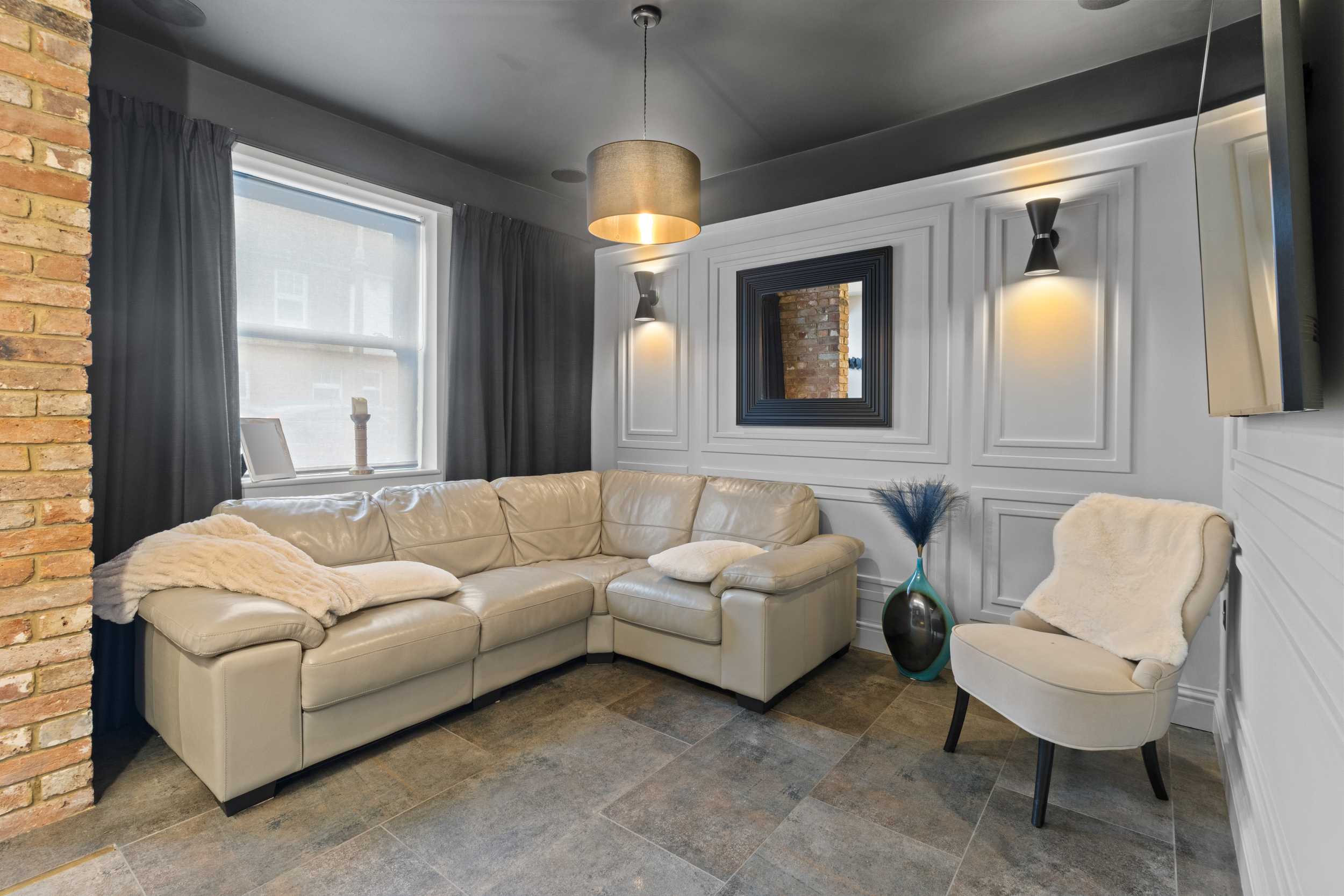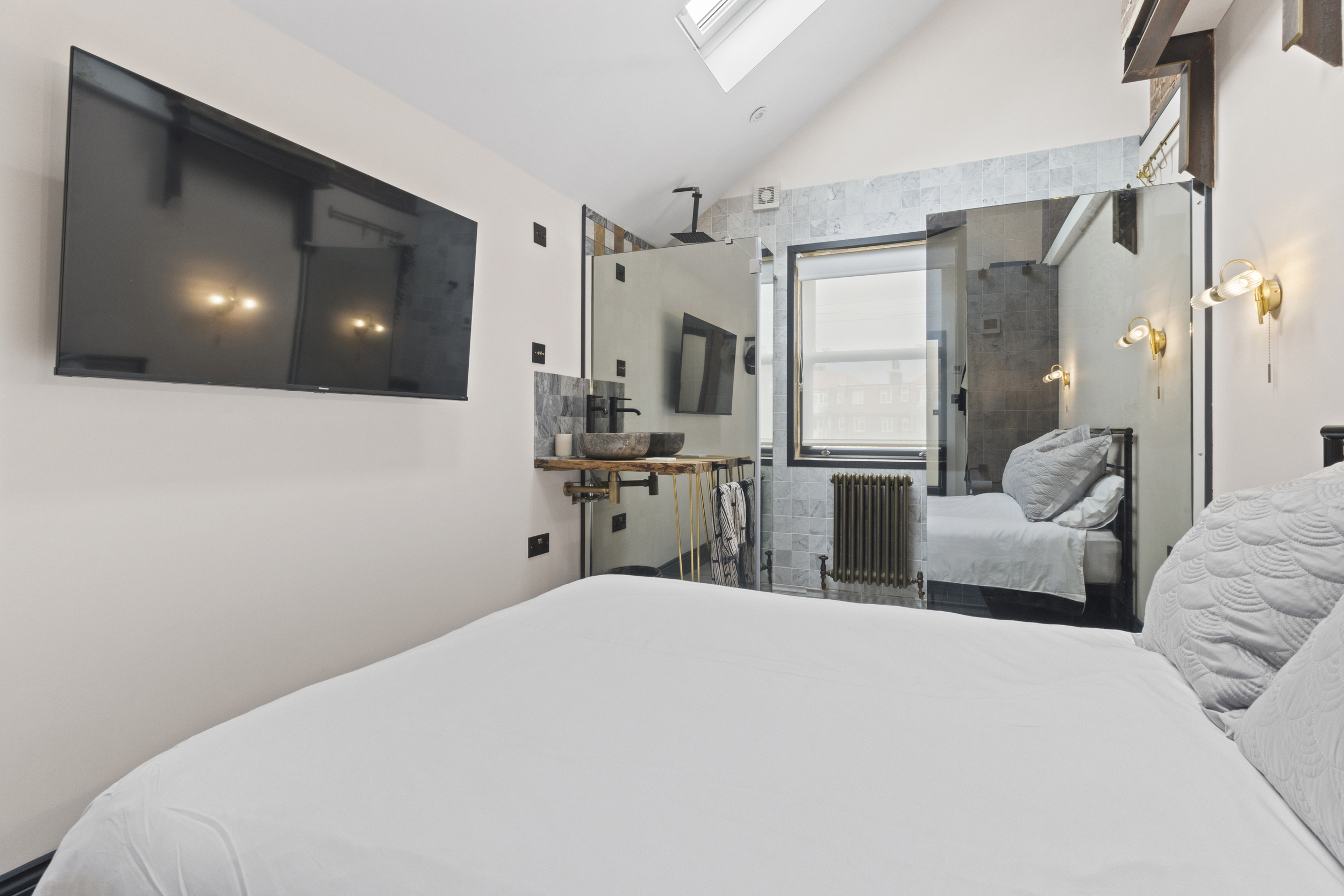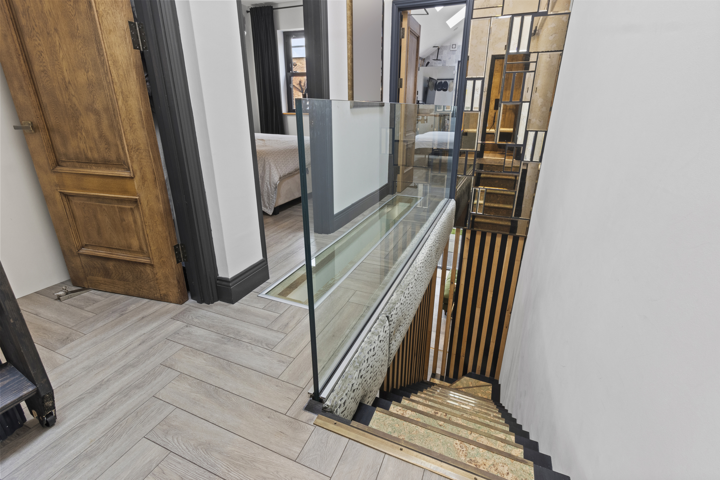 The upstairs accommodation is equally impressive, with three well-proportioned double bedrooms, each fitted with bespoke wardrobes to maximise storage and maintain a clutter-free aesthetic.