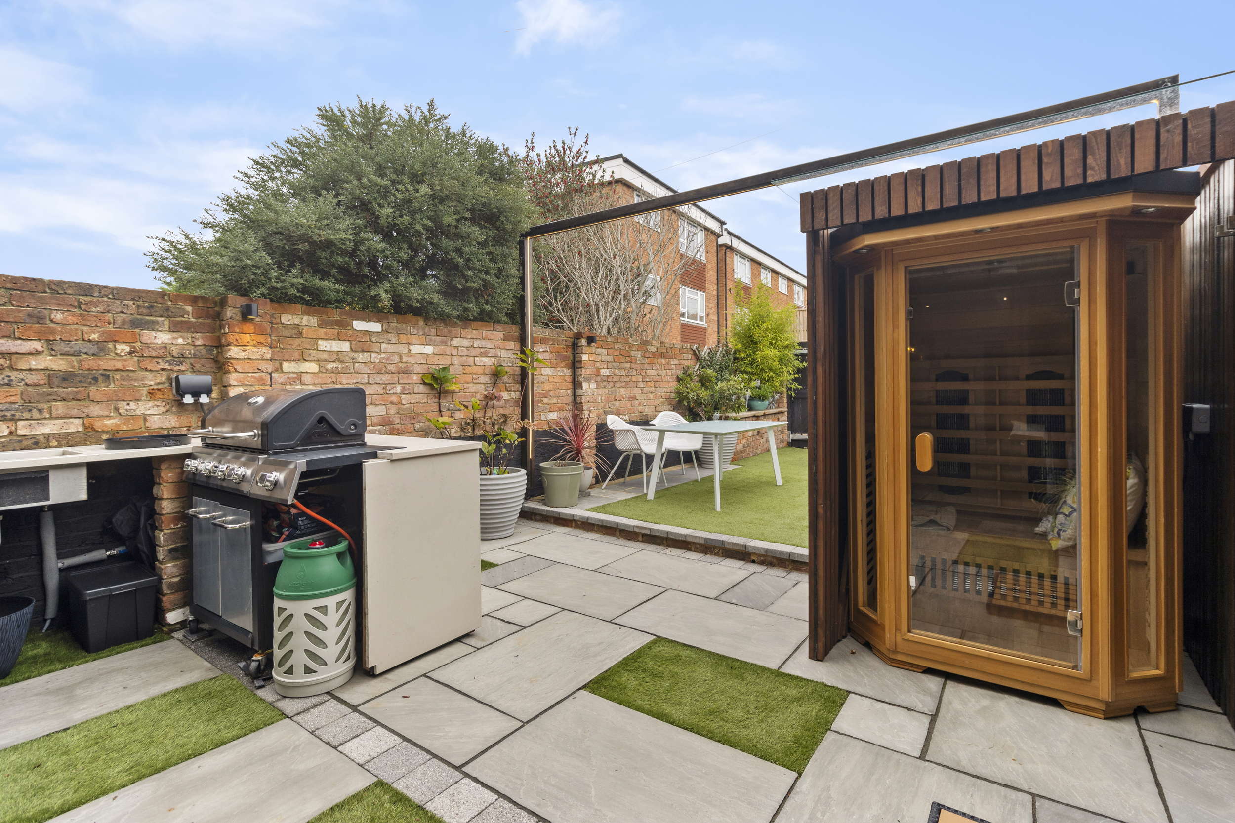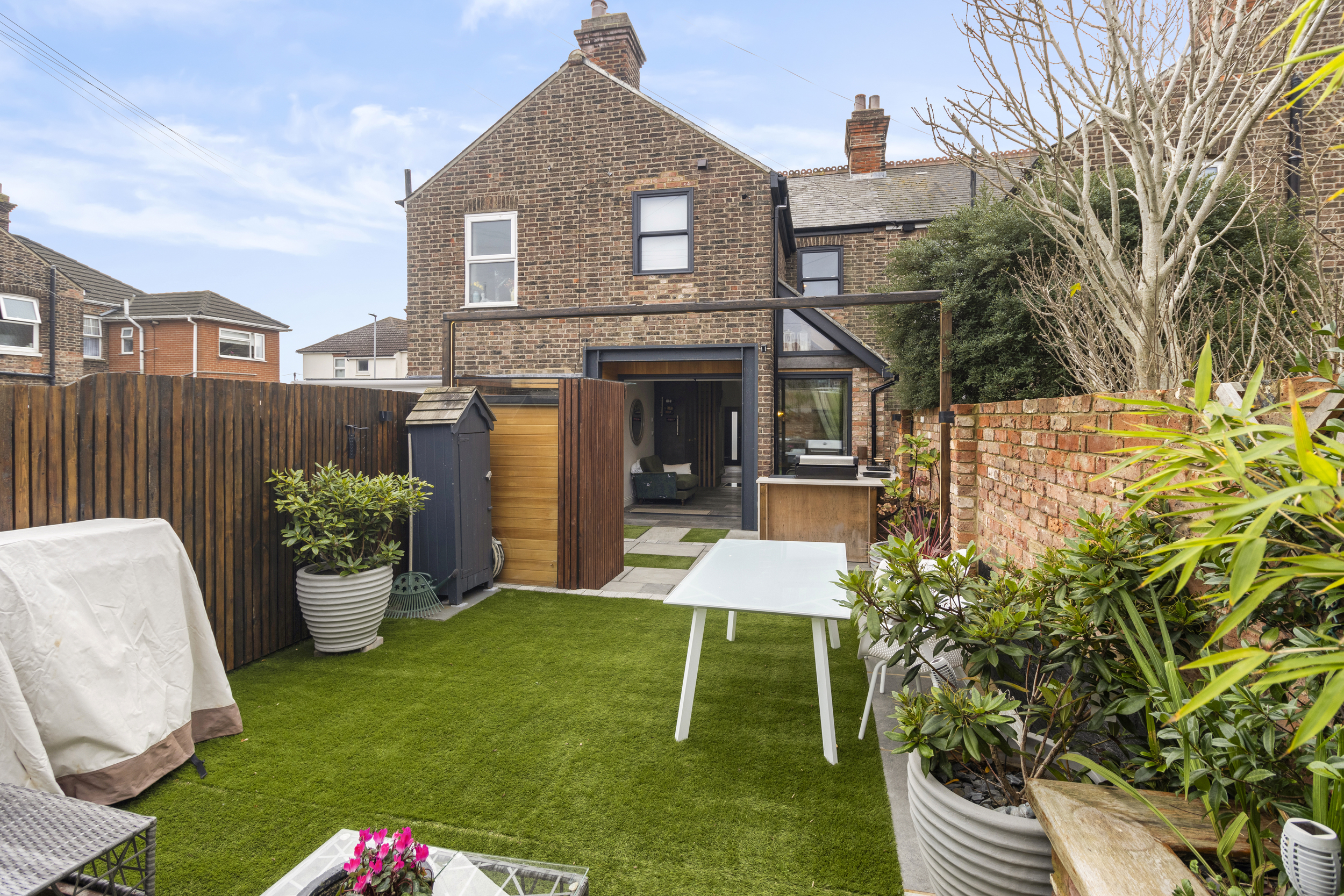 The sense of innovation continues outdoors. The rear garden has been transformed into a stylish and low-maintenance retreat, blending leisure and luxury.