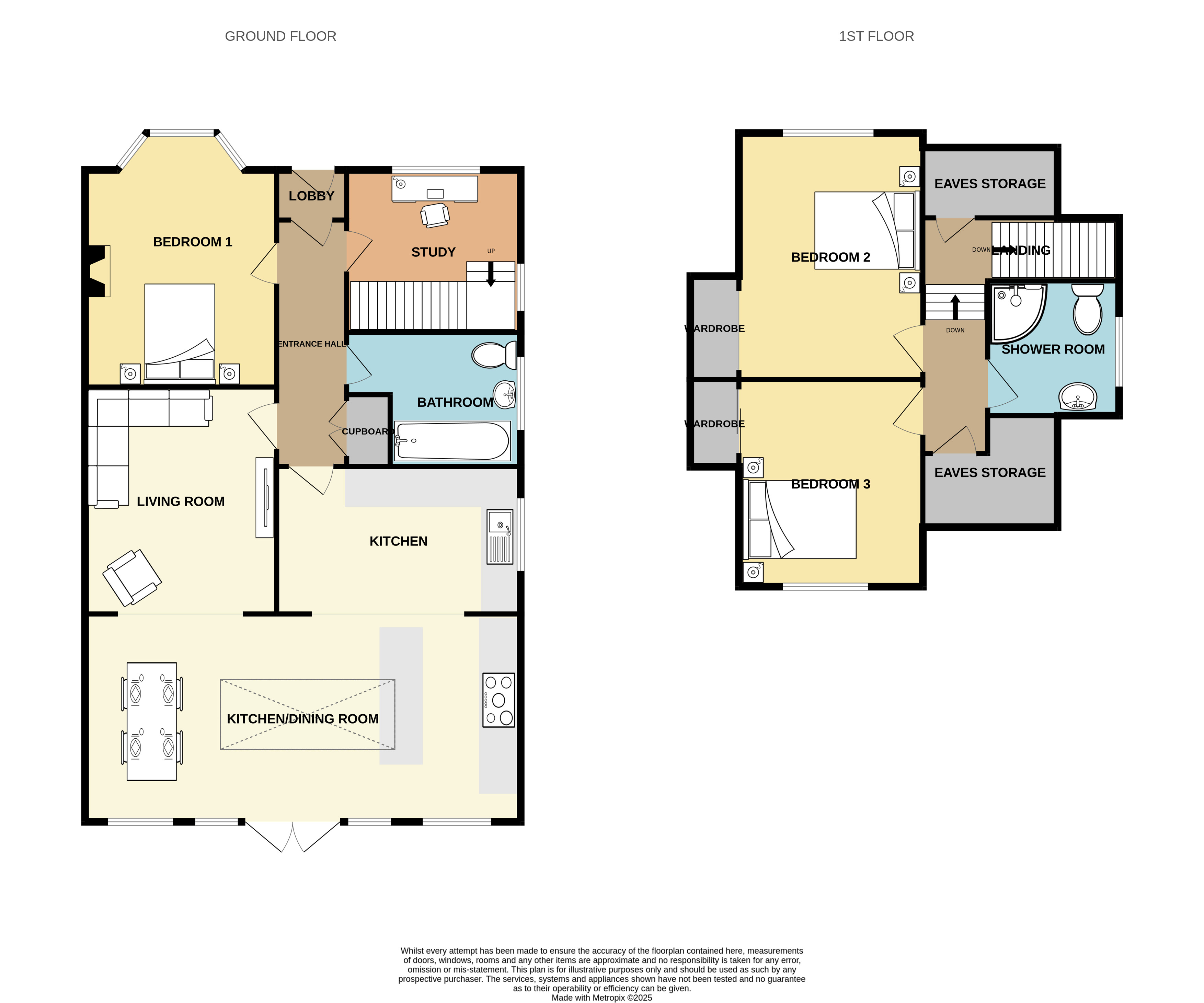 Completing the ground floor is a dedicated study or home office, providing a quiet and private space for remote working or hobbies, with stairs rising to the first floor.