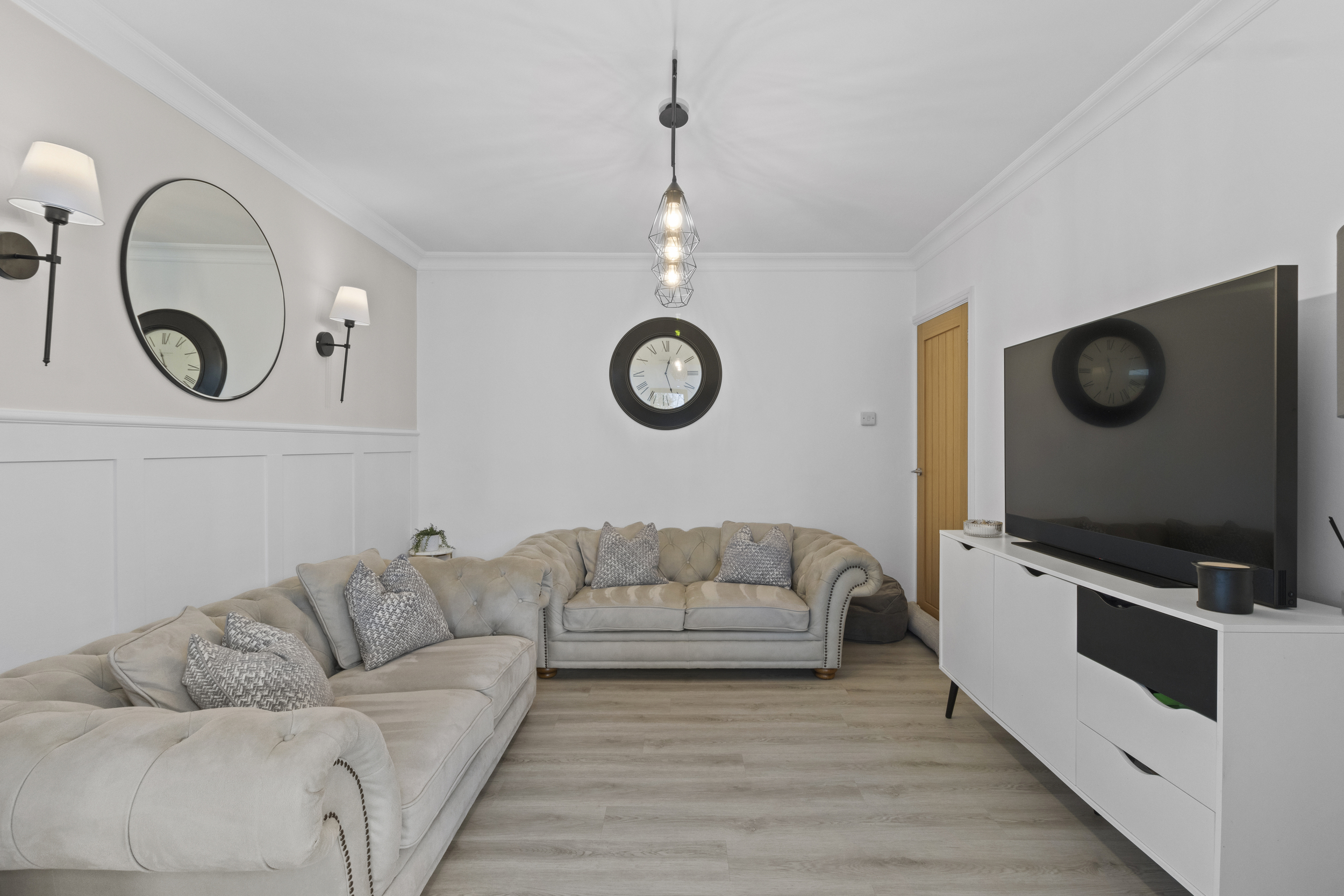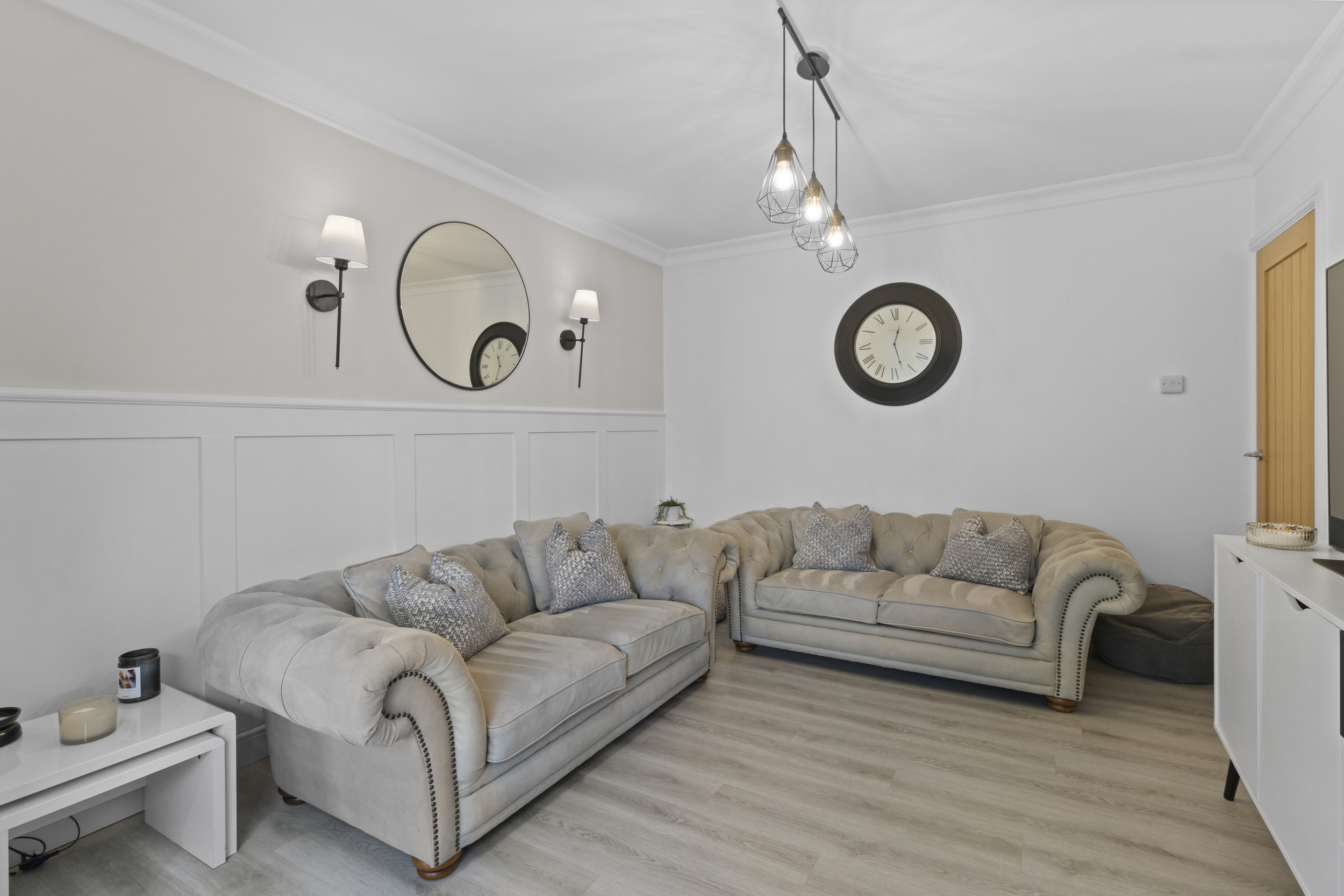 Adjacent to the kitchen/dining area is a cosy snug/living area, creating a seamless flow of living space — ideal for relaxing with a book, watching television, or simply enjoying views over the garden.
