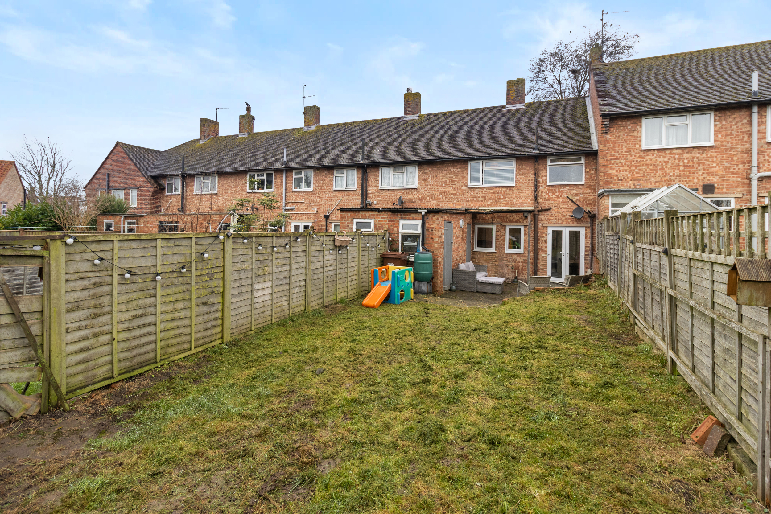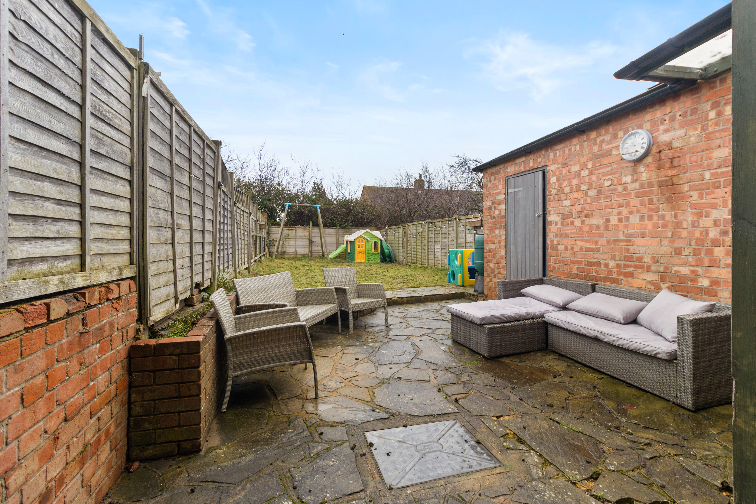 The rear garden is a notable feature of the property. It is spacious, fully enclosed and offers excellent potential for personalisation. A paved patio area directly adjoins the property, ideal for outdoor seating and entertaining, leading to a lawned area beyond. The garden provides a blank canvas for landscaping or planting to suit individual tastes. Additional benefits include a brick-built outside toilet and a brick-built storage shed, which is fitted with power and lighting, offering excellent storage or workshop potential.
