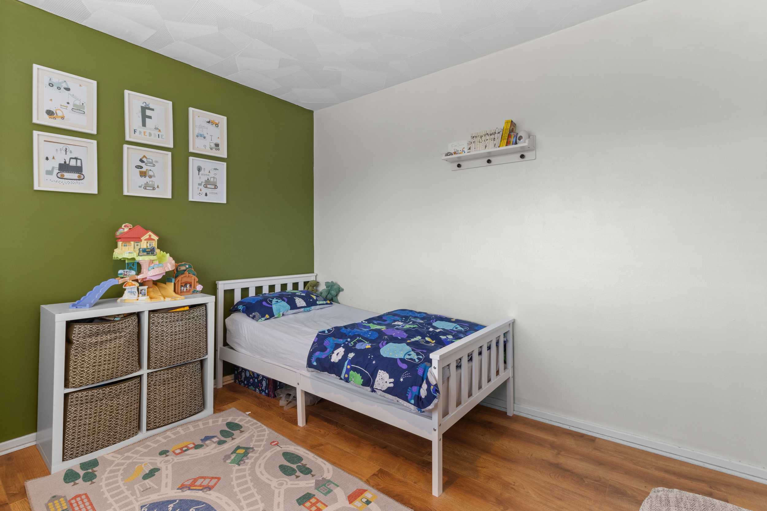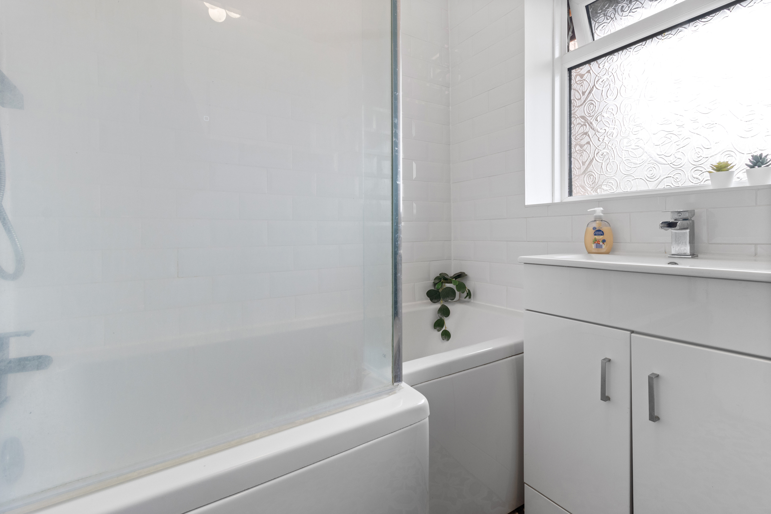 The first-floor accommodation comprises two well-proportioned double bedrooms and a modern family bathroom. The principal bedroom is front facing and particularly spacious, featuring two double-glazed windows that enhance both light and versatility. Similar properties have successfully divided this room to create two separate bedrooms, offering potential for reconfiguration into a three-bedroom home, subject to requirements. The second bedroom is another generous double room, located to the rear of the property and enjoying a pleasant outlook over the garden.