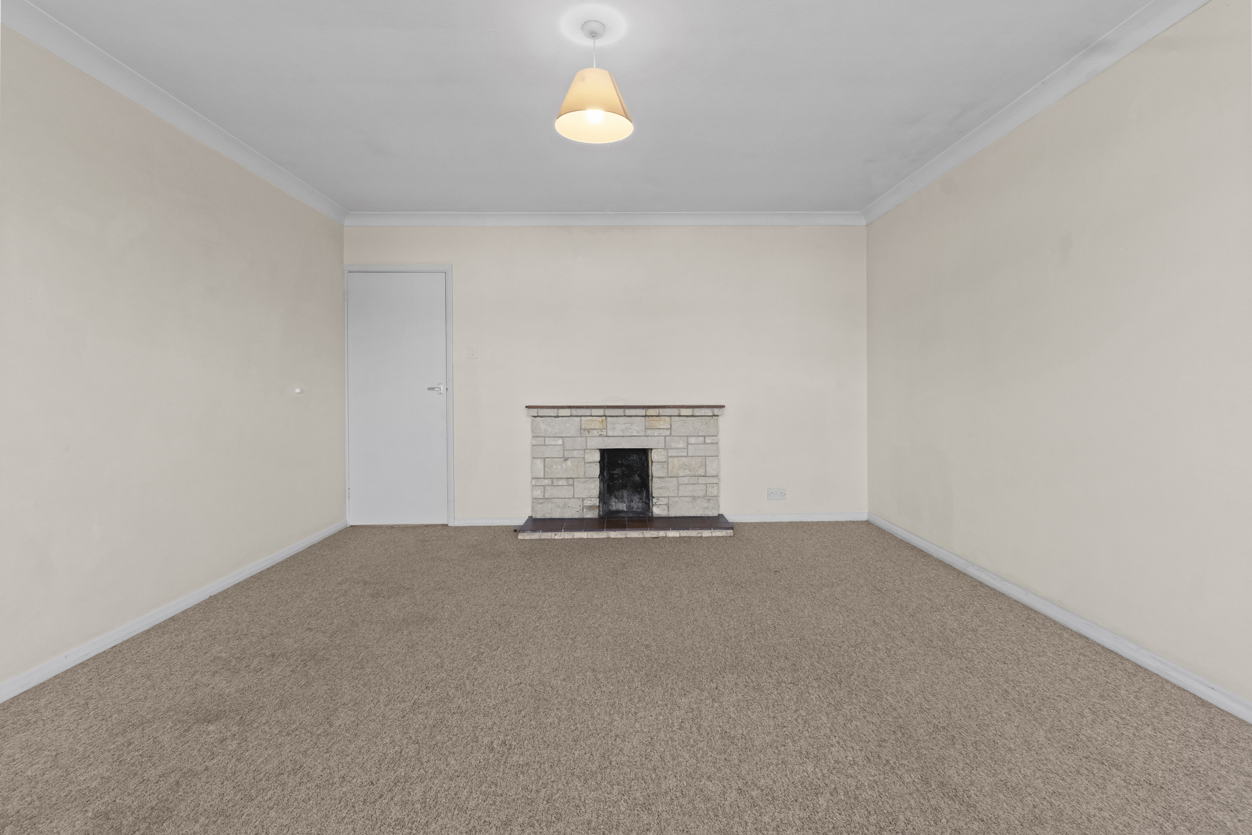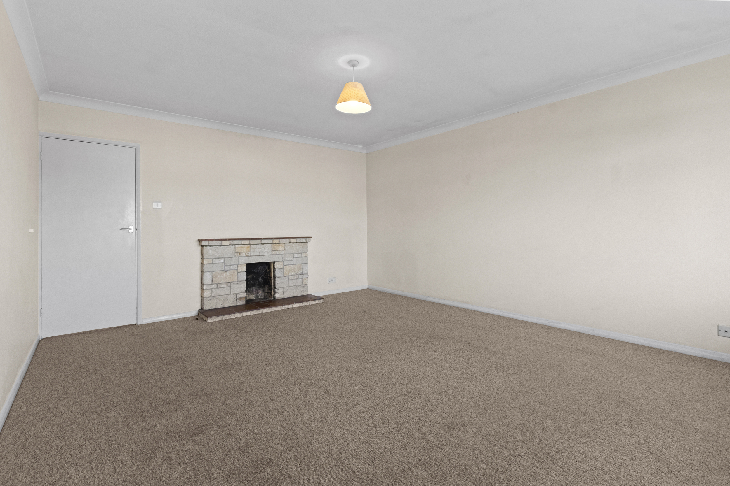 The living room is a generous, front-facing reception space that enjoys plenty of natural light. A feature fireplace surround provides a focal point to the room, while the layout allows ample space for both lounge seating and additional furniture. A further door leads from the living room into the inner hallway, creating a natural separation between living and sleeping accommodation.