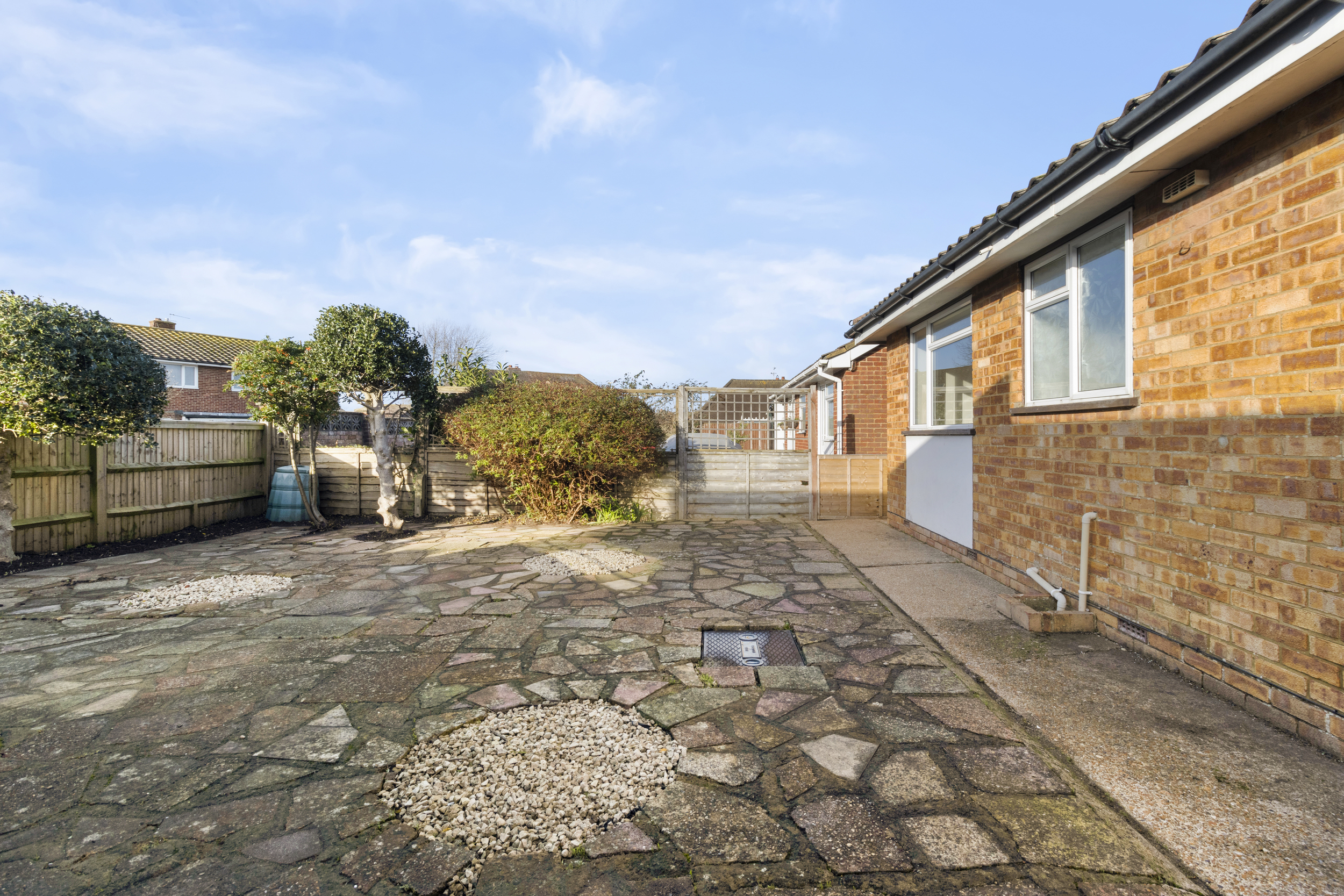 Upon approach, the property is set back from the road, offering a degree of privacy. The front garden is mainly laid to patio with mature shrub borders, creating an attractive first impression. A pathway leads to the front entrance and side access continues through to the rear garden.