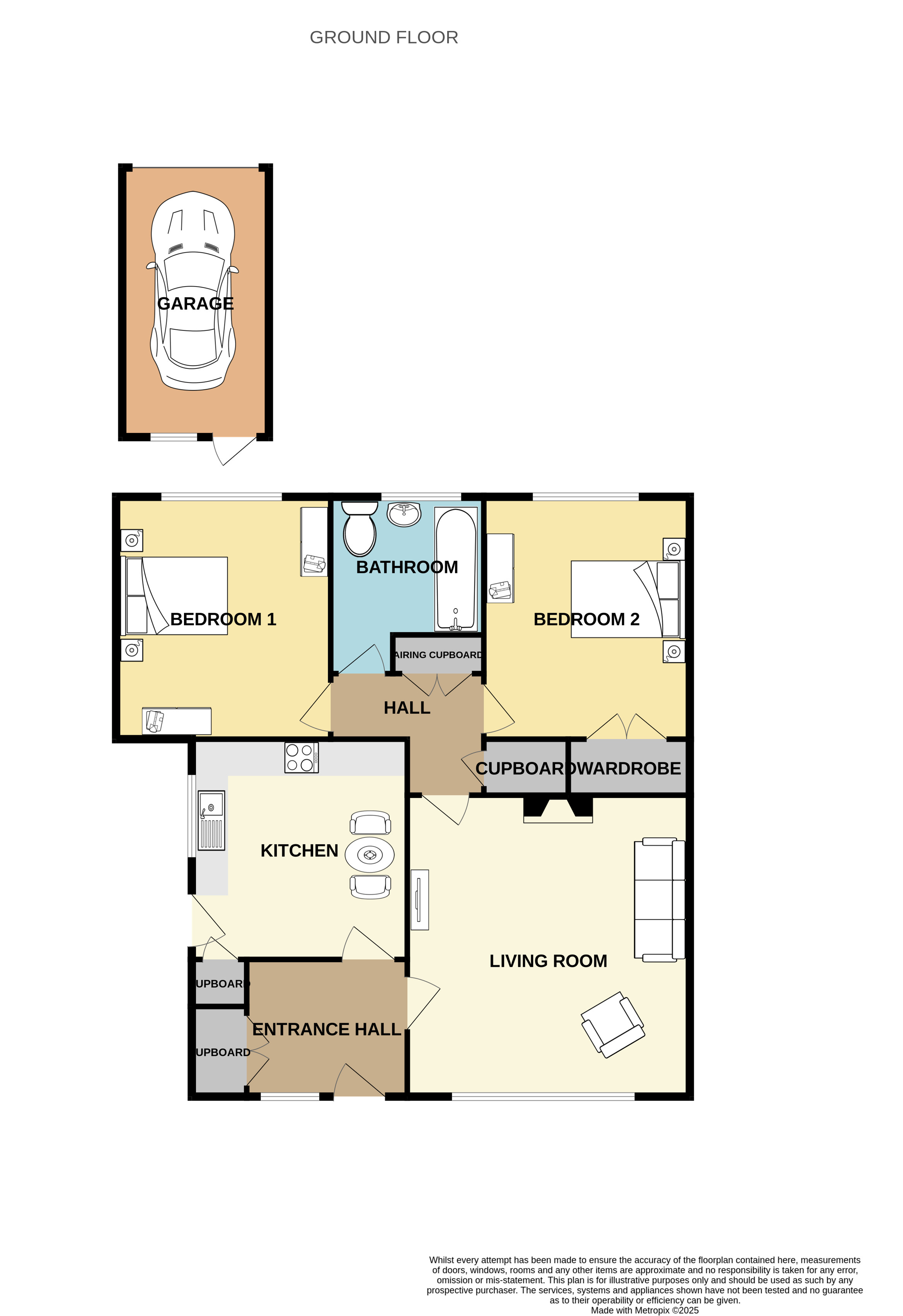 The garage features an up-and-over door and is equipped with power and lighting, making it suitable for storage, secure parking, or workshop use.