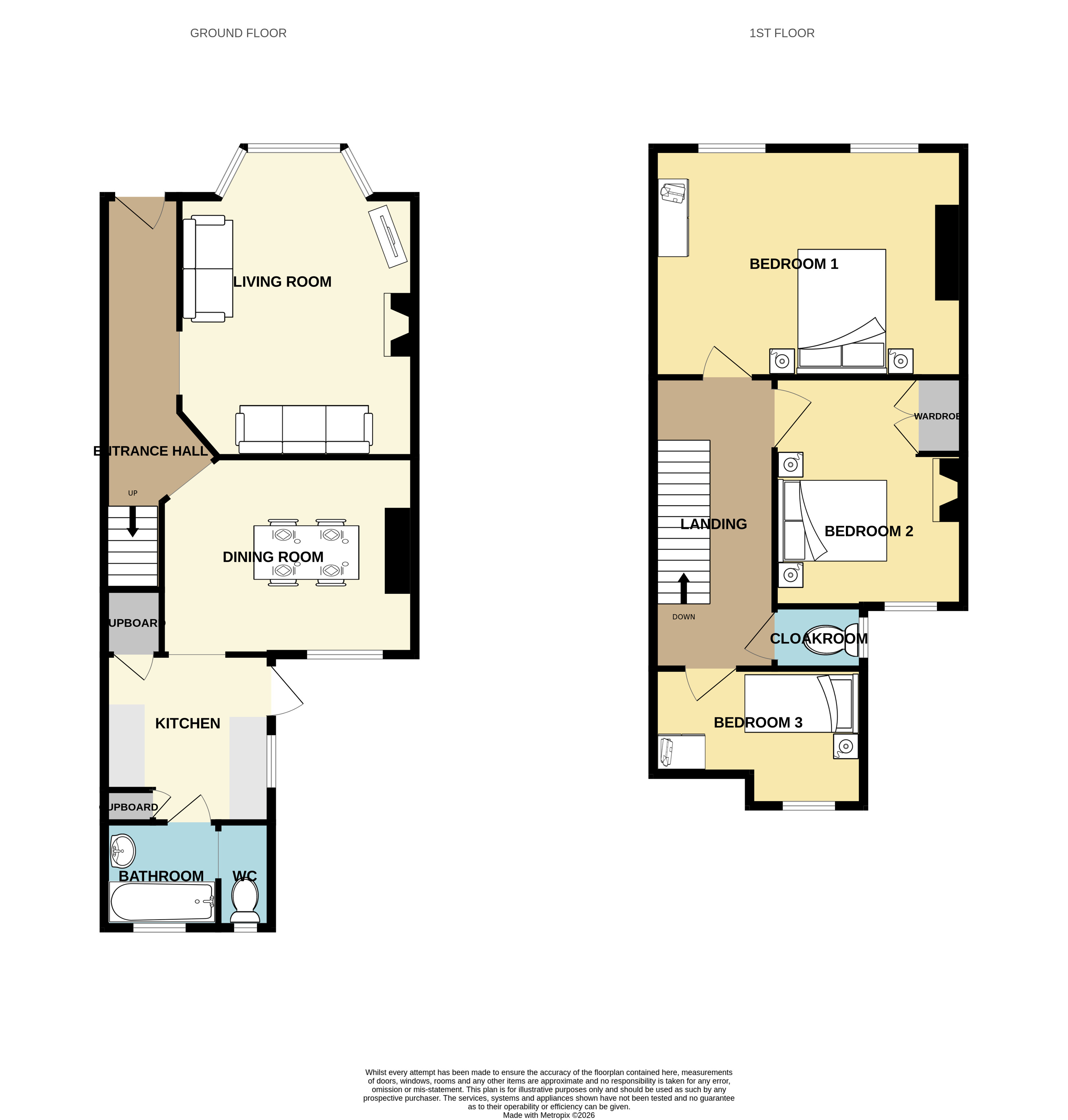 To the first floor, the accommodation continues with three bedrooms, all of which offer flexible use depending on the buyer’s needs, along with a further cloakroom.