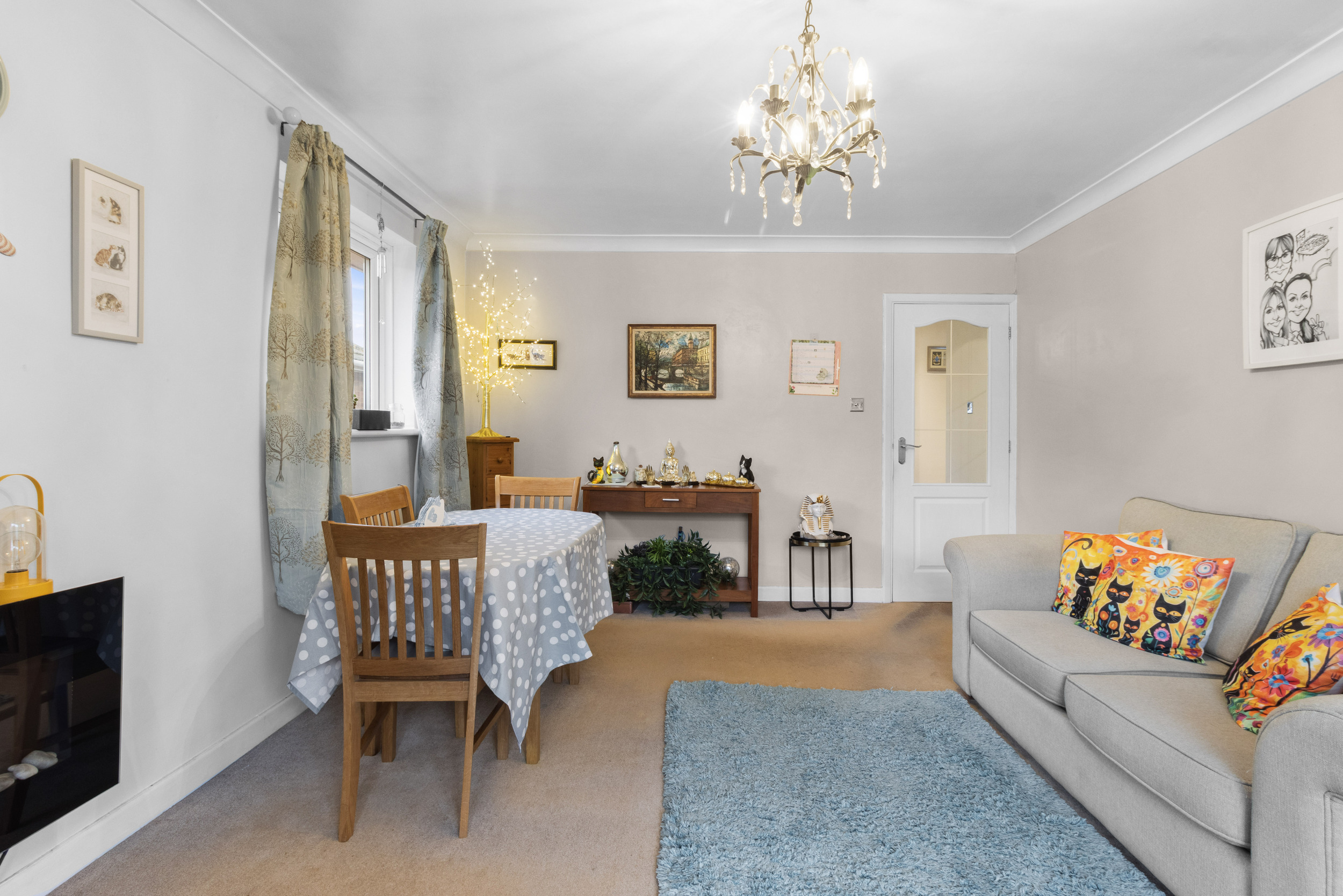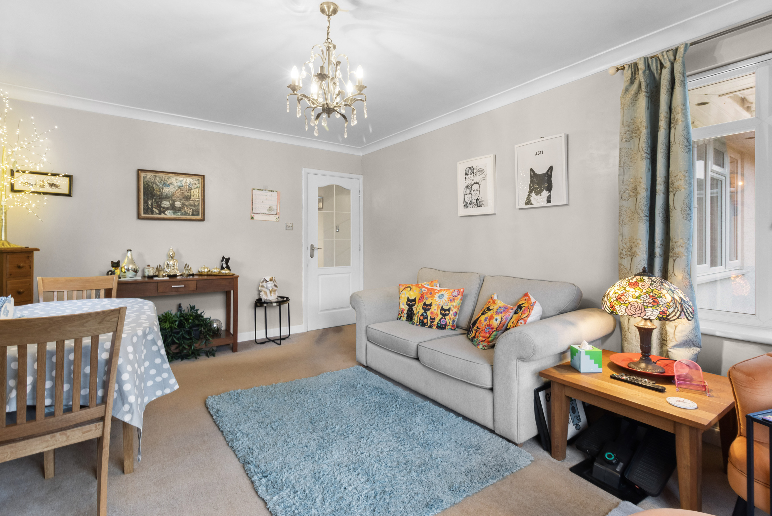 The property is accessed via well-maintained communal areas, with a communal staircase leading to the first floor. The apartment’s private entrance opens into a welcoming entrance hall which provides access to all accommodation and offers a practical and well-laid-out flow throughout the home.