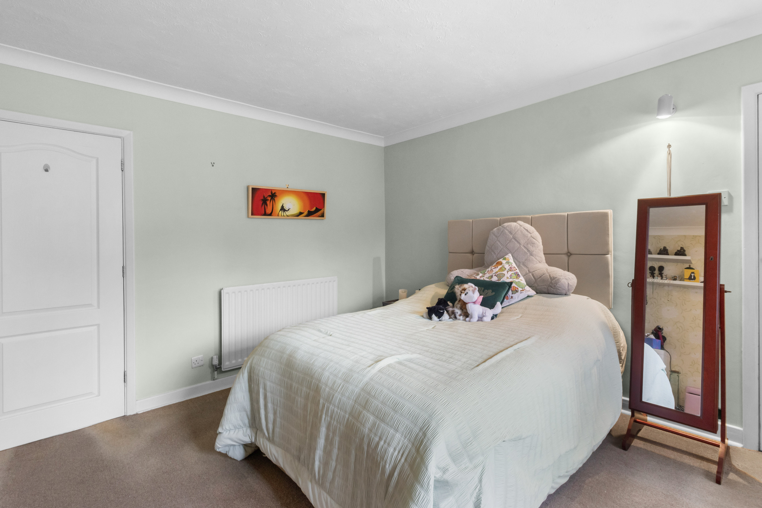 Both bedrooms are well-proportioned double rooms, providing comfortable and versatile accommodation. The principal bedroom further benefits from a walk-in wardrobe, offering excellent storage. The accommodation is completed by a separate modern bathroom.
