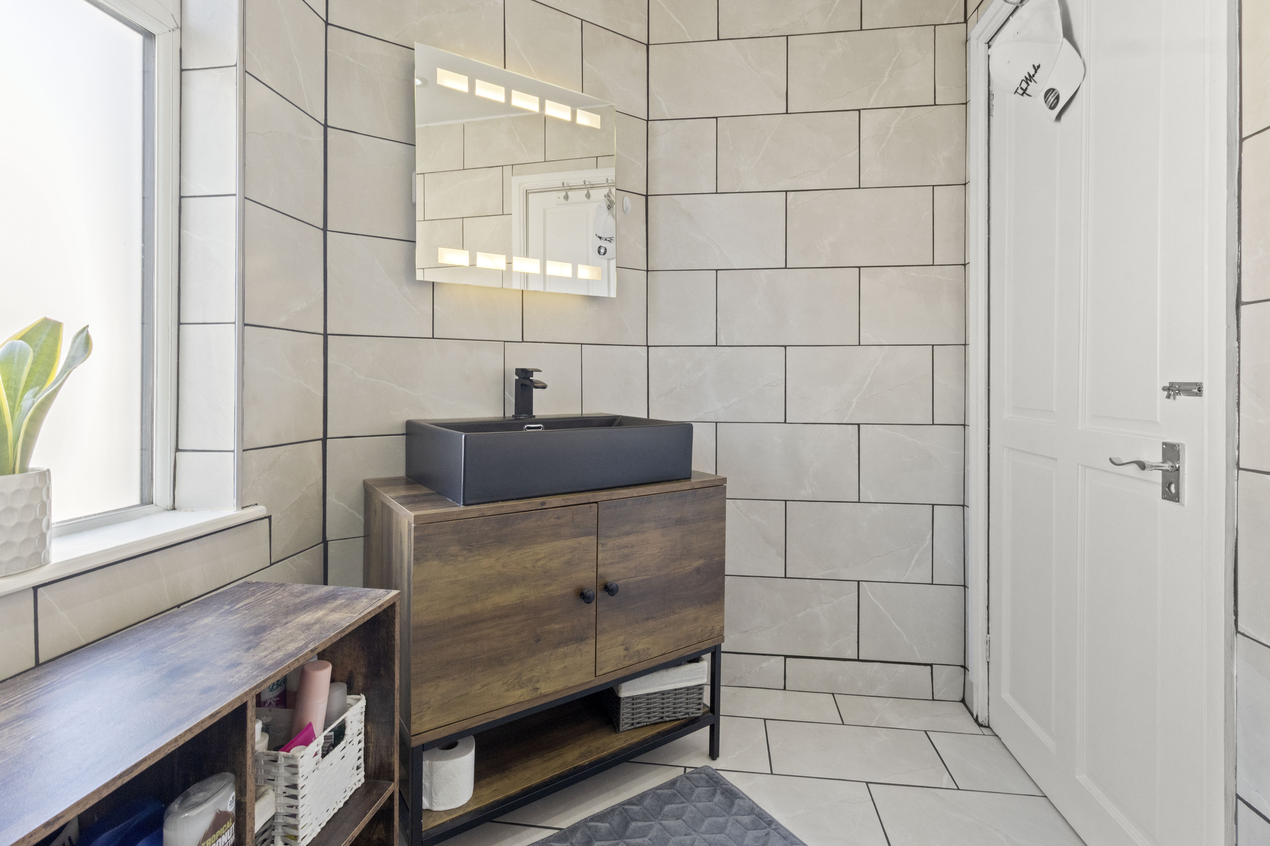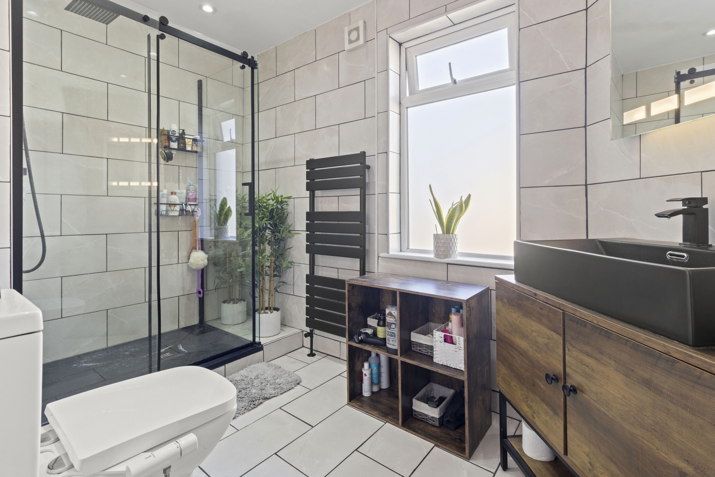 Bedroom one is positioned to the front of the property and is a generous double room benefiting from fitted wardrobes, providing excellent storage. Bedroom two overlooks the rear garden and is another comfortable double room, ideal as a guest bedroom, children’s room or home office.