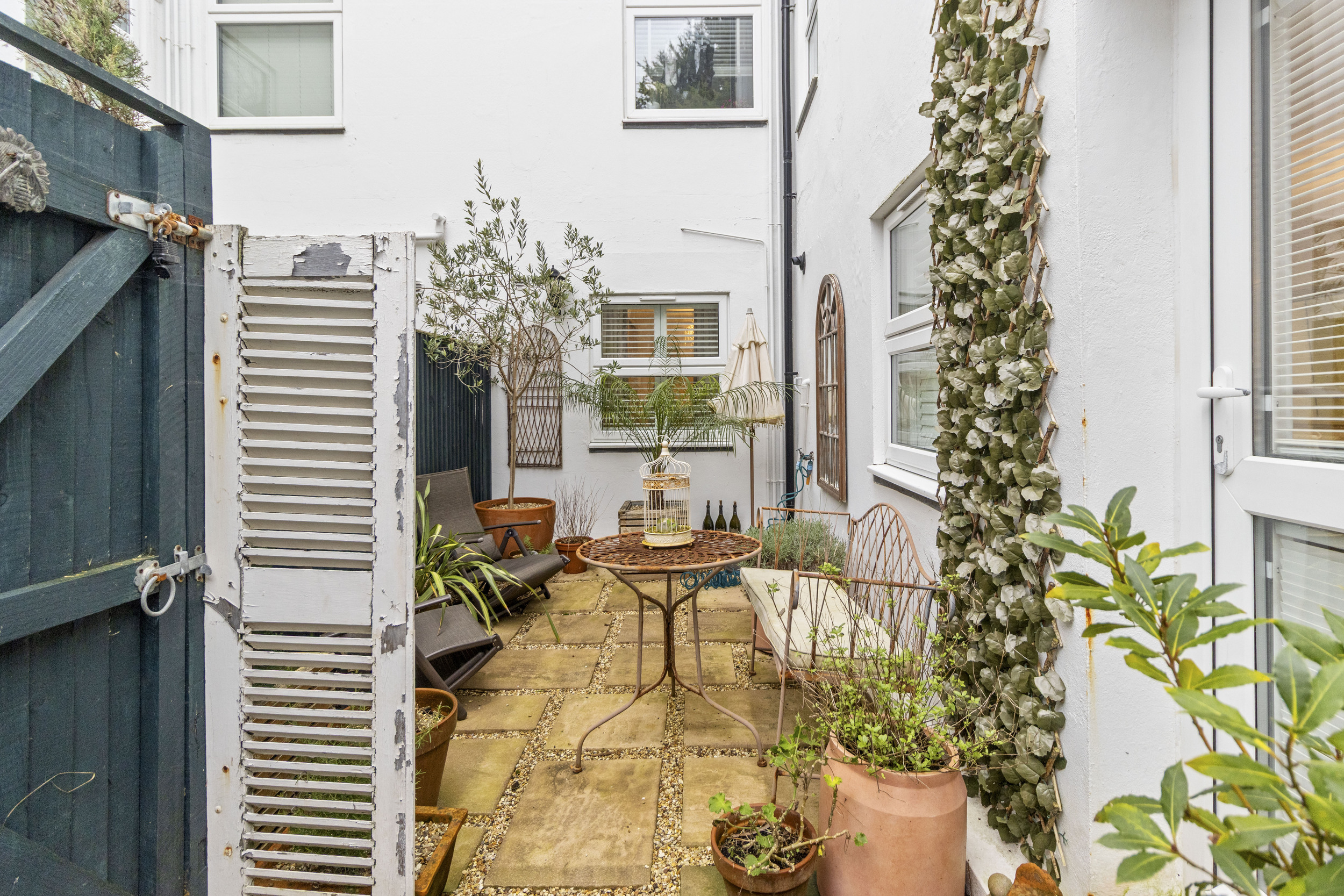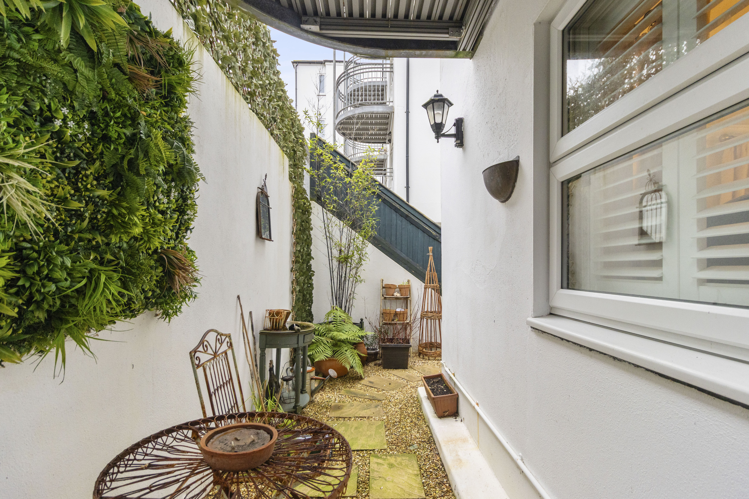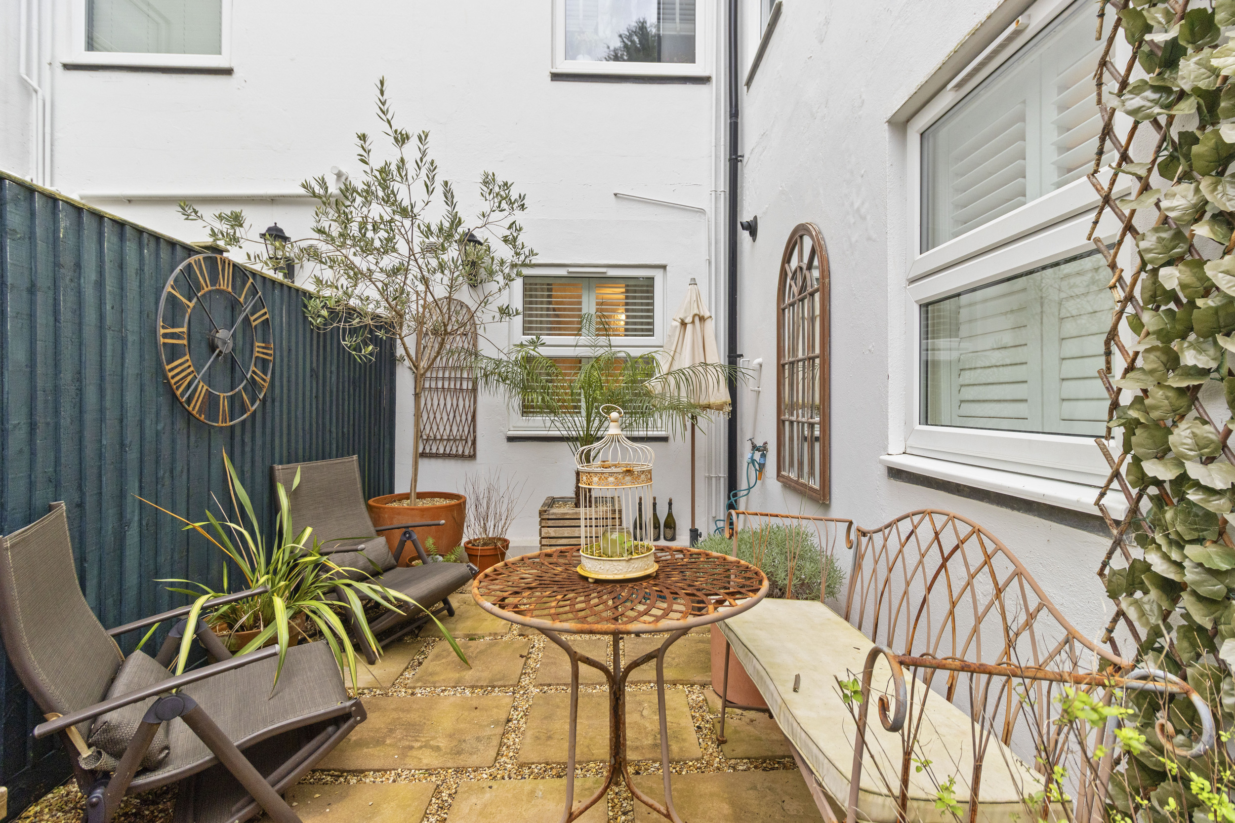 The courtyard is thoughtfully landscaped with a mix of pea shingle and terracotta stones, accentuated by traditional Victorian-style edging, combining classic elegance with a relaxed, Mediterranean feel. The layout incorporates two separate seating areas, ideal for flexible use — one perfect for a leisurely morning coffee and the other for enjoying a glass of wine in the evening sun.