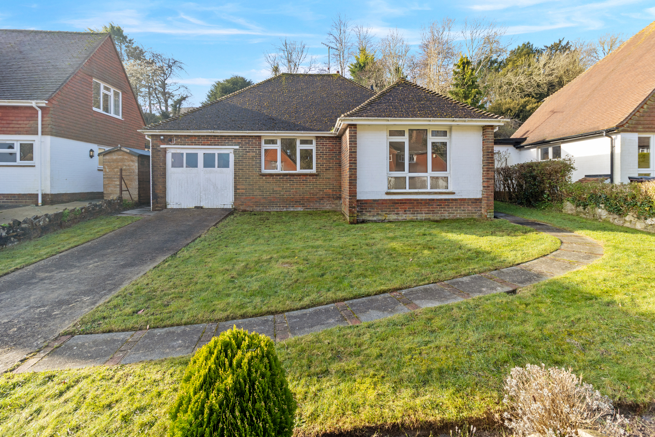 Phil Hall Estate Agents brings to the market a spacious and well-proportioned two double bedroom detached bungalow, offering generous internal accommodation, a garage, driveway, and beautifully maintained gardens. Situated in the highly sought-after Upper Ratton area of Eastbourne, the property enjoys convenient access to the South Downs and is offered chain free, making it an ideal opportunity for those looking to move quickly.