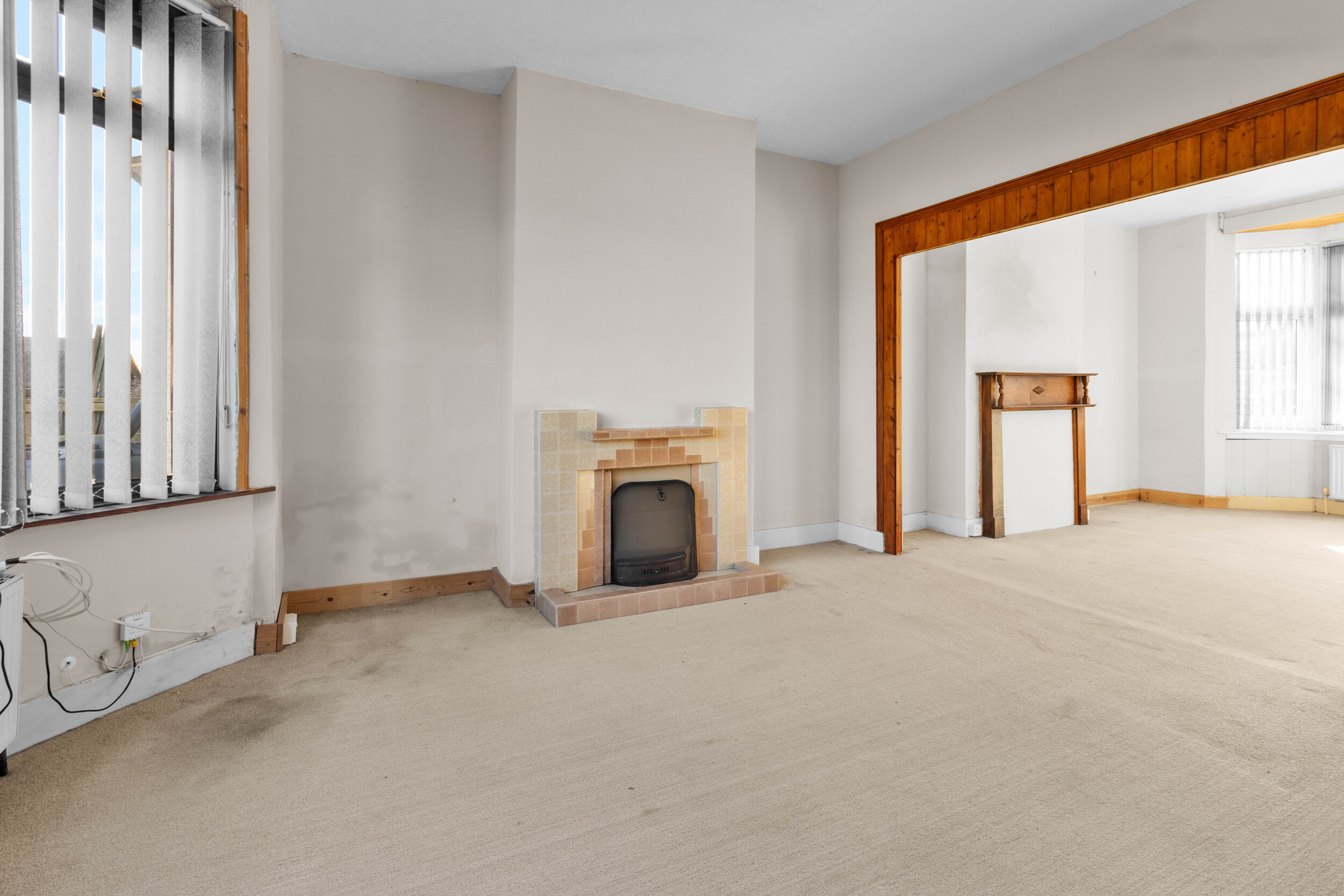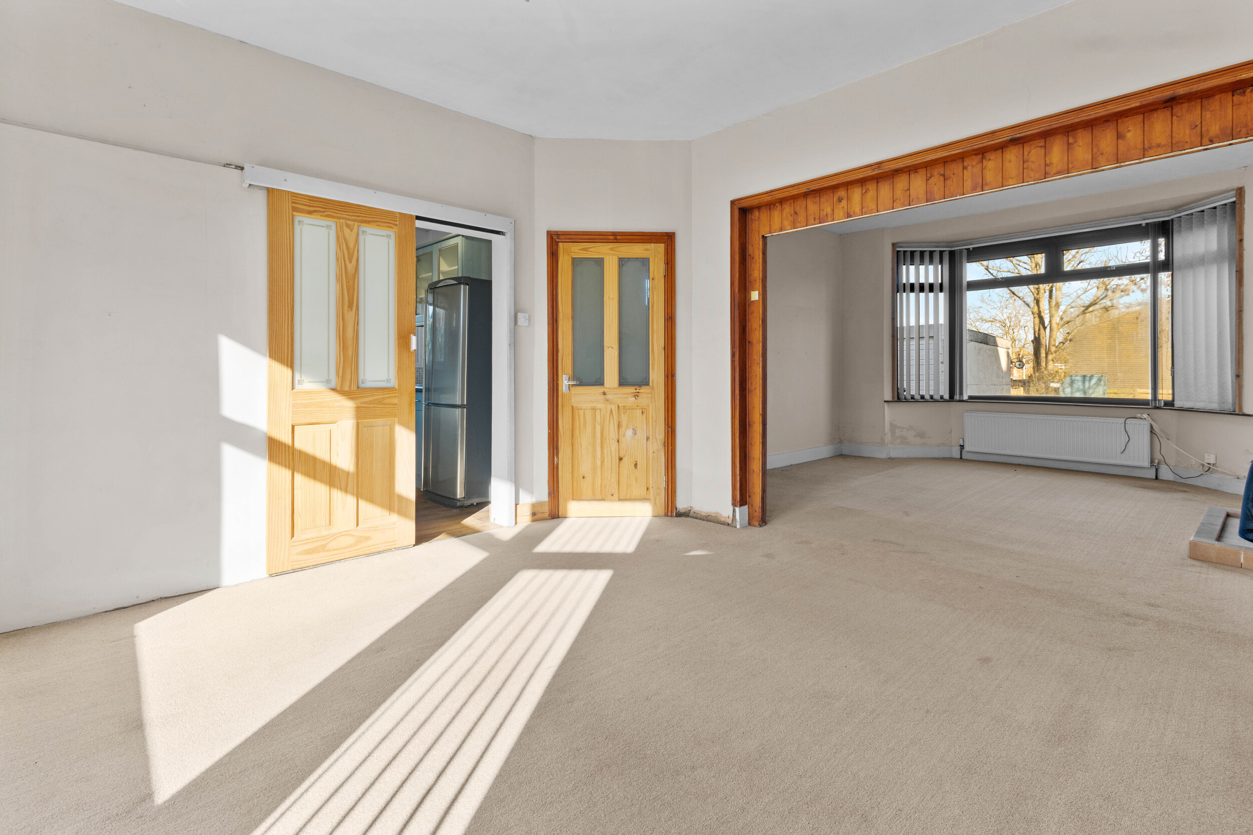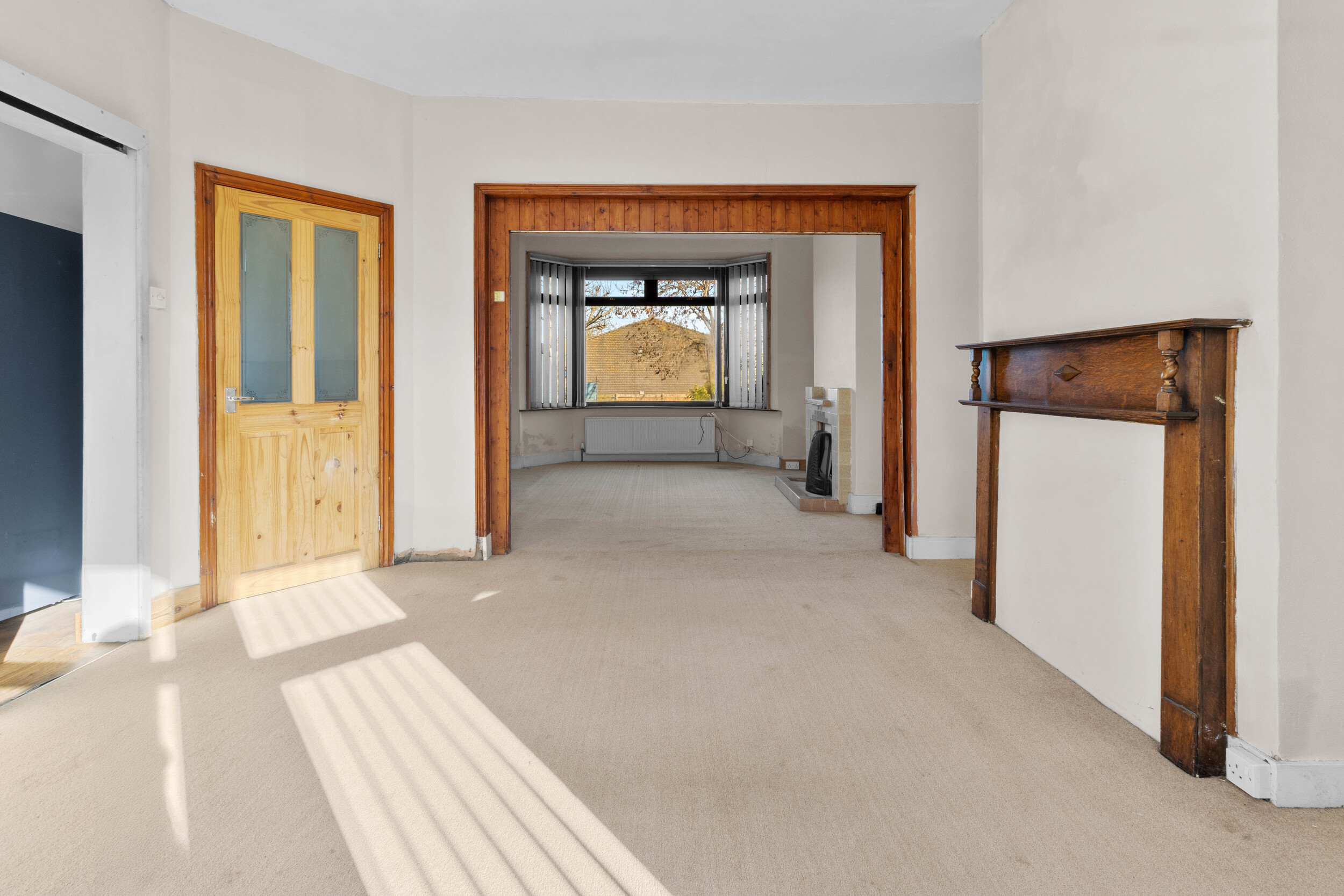 Leading through from the kitchen is the spacious living room, which is positioned at the front of the property and features a large bay window allowing for an abundance of natural light. This room provides a comfortable and inviting living space and flows seamlessly into the adjoining dining room, creating an excellent open-plan feel that is ideal for both family living and entertaining. The dining room is generously sized and enjoys pleasant views over the rear garden, providing a lovely setting for family meals or social gatherings.