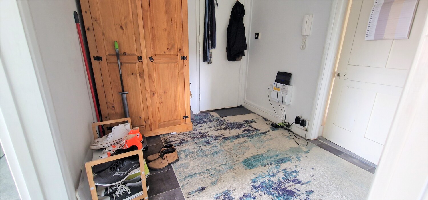 As you enter the ground floor communal entrance hall via the secure entry phone system, follow the stairs leading to the fourth floor. Upon entering the property, you approach the entrance hall with plenty of space for storage.