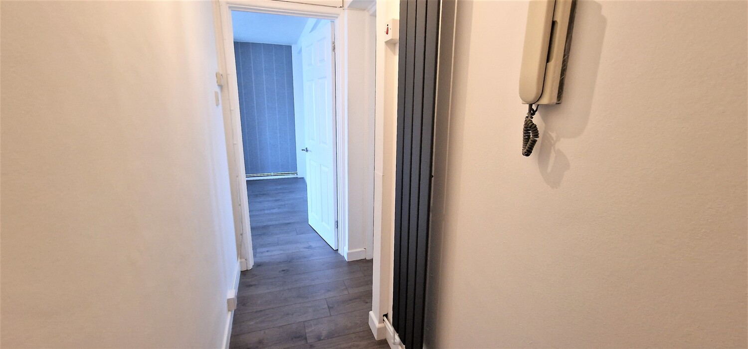 Upon entering the communal entrance hall via the secure entry phone system, the private entrance is situated on the ground floor. Entering the property you approach the entrance hall with the entry phone system, radiator and access to the living room and bathroom.