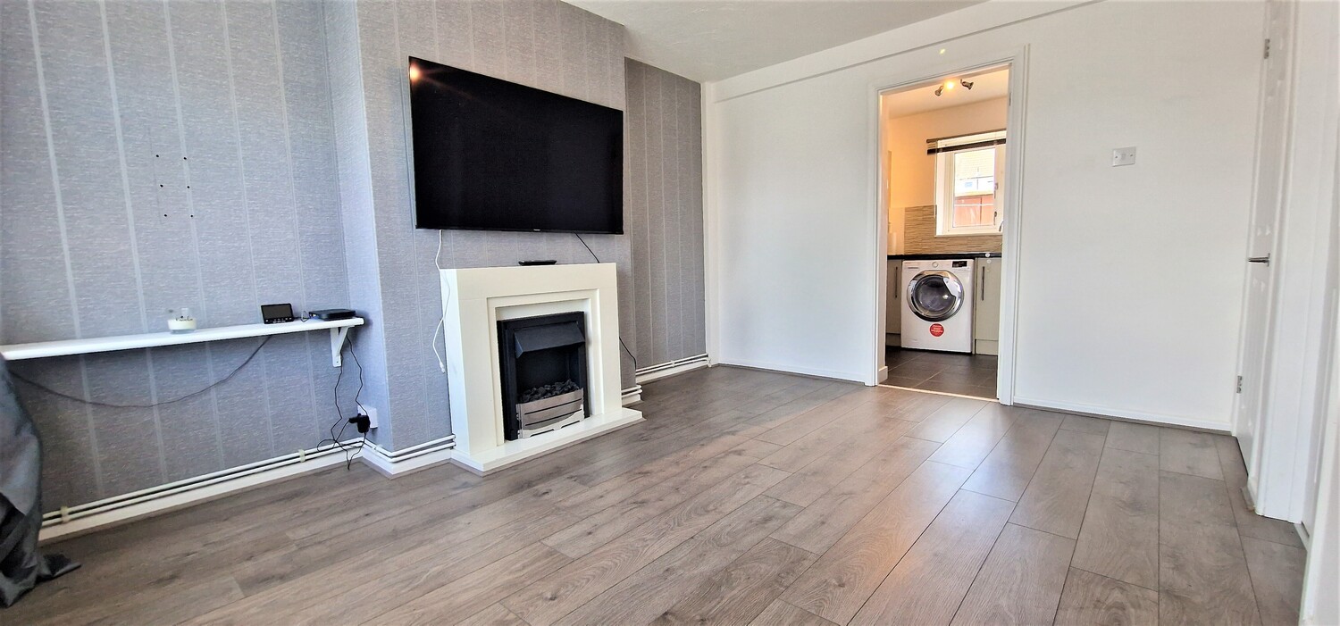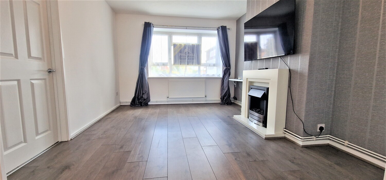 The spacious living room is front facing with a double glazed window, feature fireplace and access to the kitchen and bedroom.